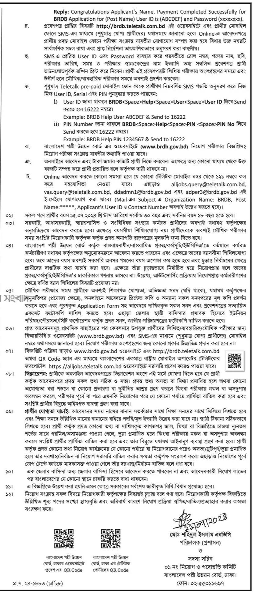 [ 💡 Note: According to your application, if you are a qualified candidate to the authorities, only eligible candidates will be notified promptly via mobile SMS and the official website of the candidate. Therefore, in the online application form of the Bangladesh Rural Development Board BRDB, all the communication related to the examination will be done on the mobile phone provided by the candidate.]