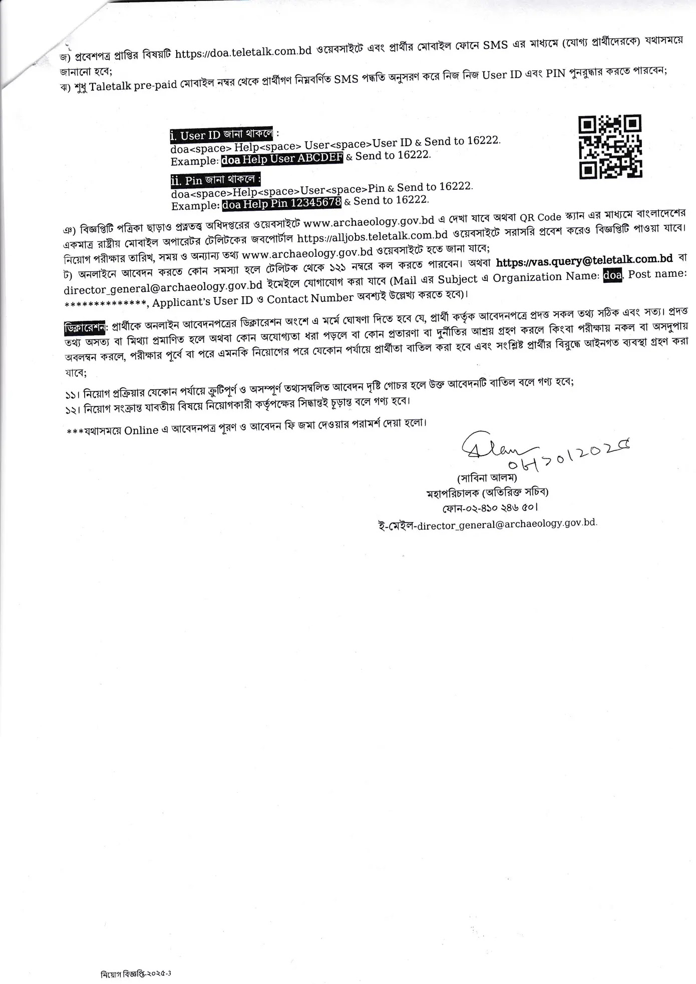 It’s essential to know that, it’s important to know the job utility schedule change discover, examination date, DOA job consequence, & and so forth. When you want any form of replace discover, then, it’s important to go to the www.archaeology.gov.bd web site, doa teletalk web site & our web site.