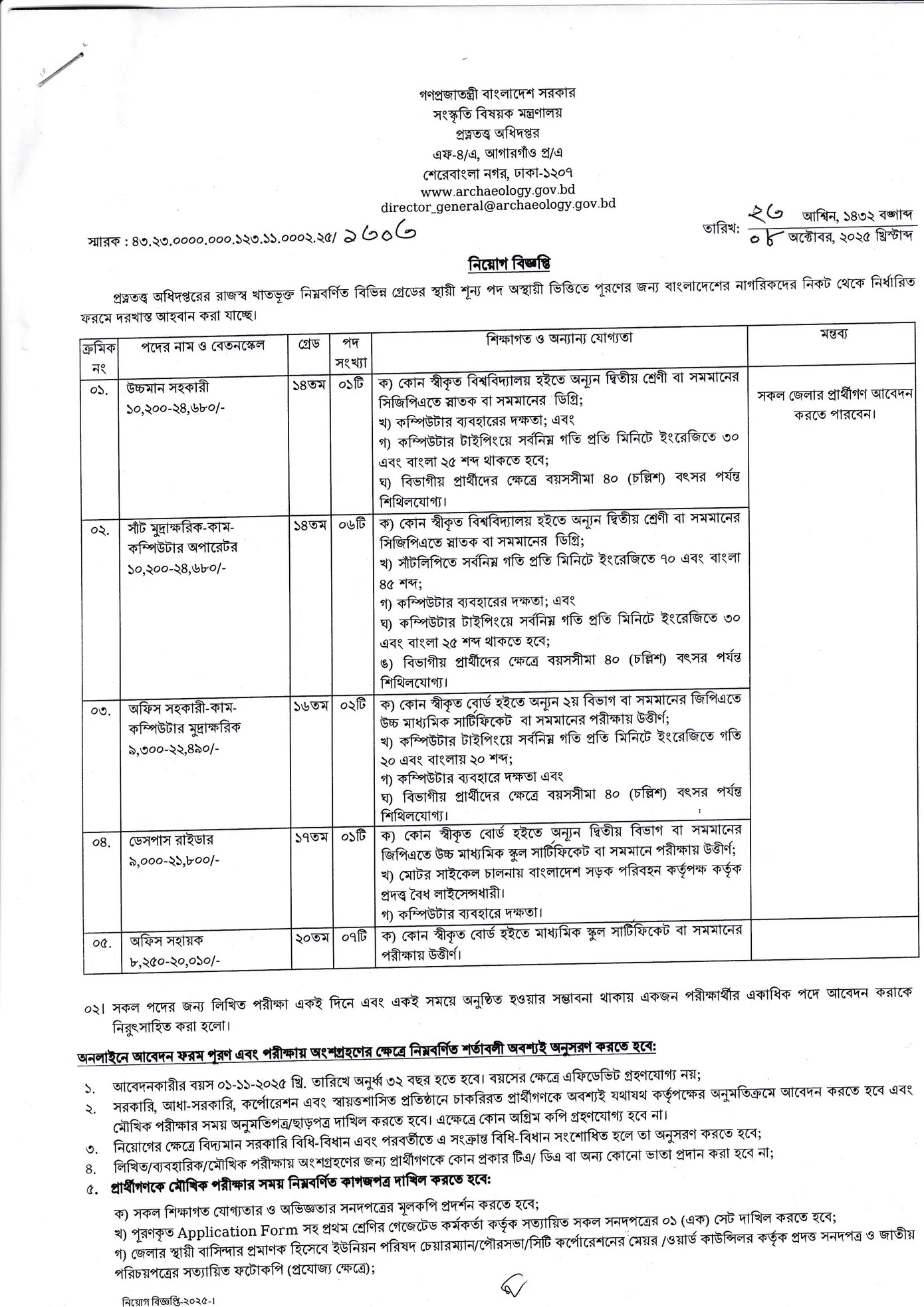 Department of Archaeology will add 17 individuals to the 05 class posts. Educated Bangladeshi residents are eligible to use for the Department of Archaeology job in 2025.