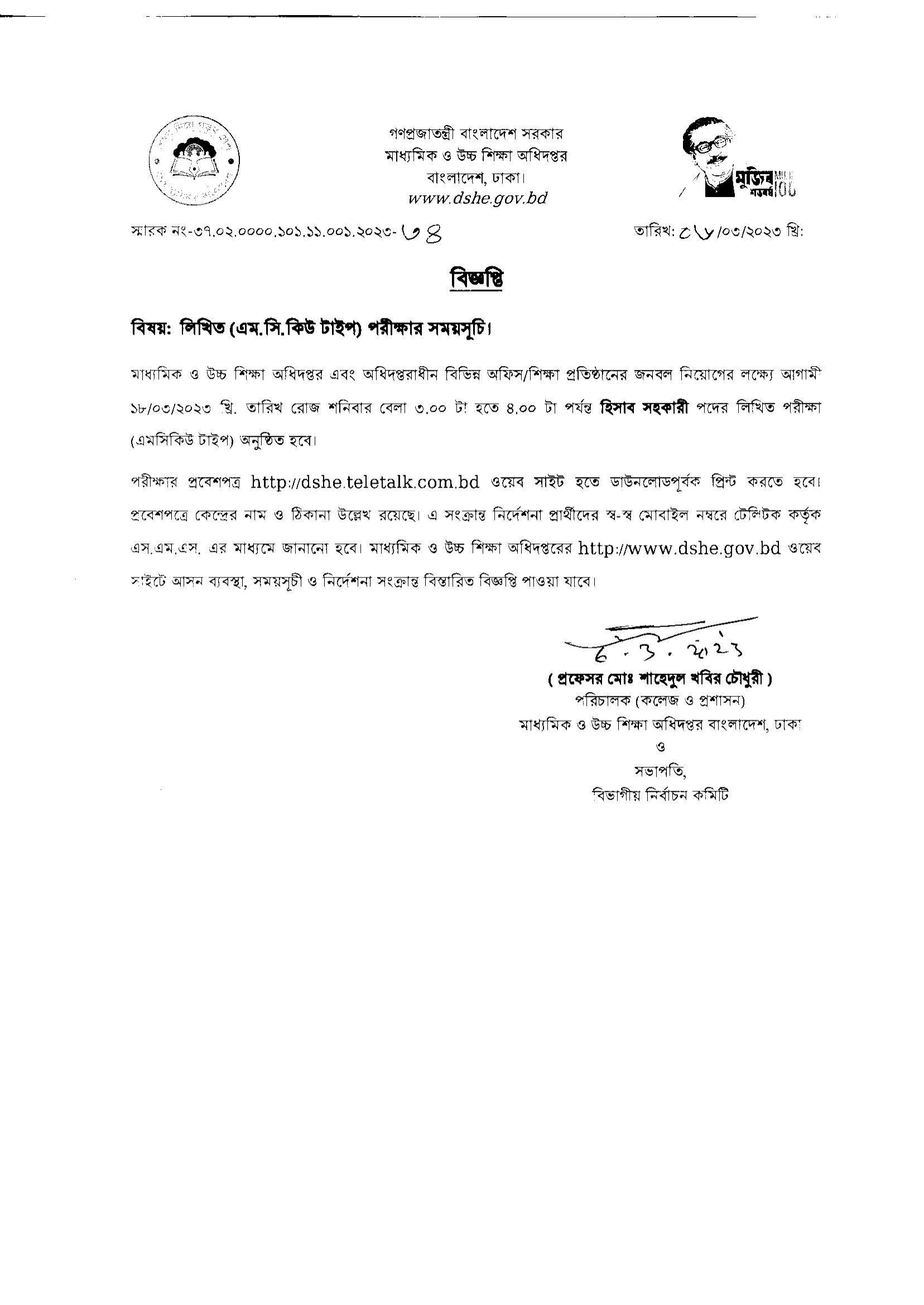 DSHE Office Shohayak Exam Date