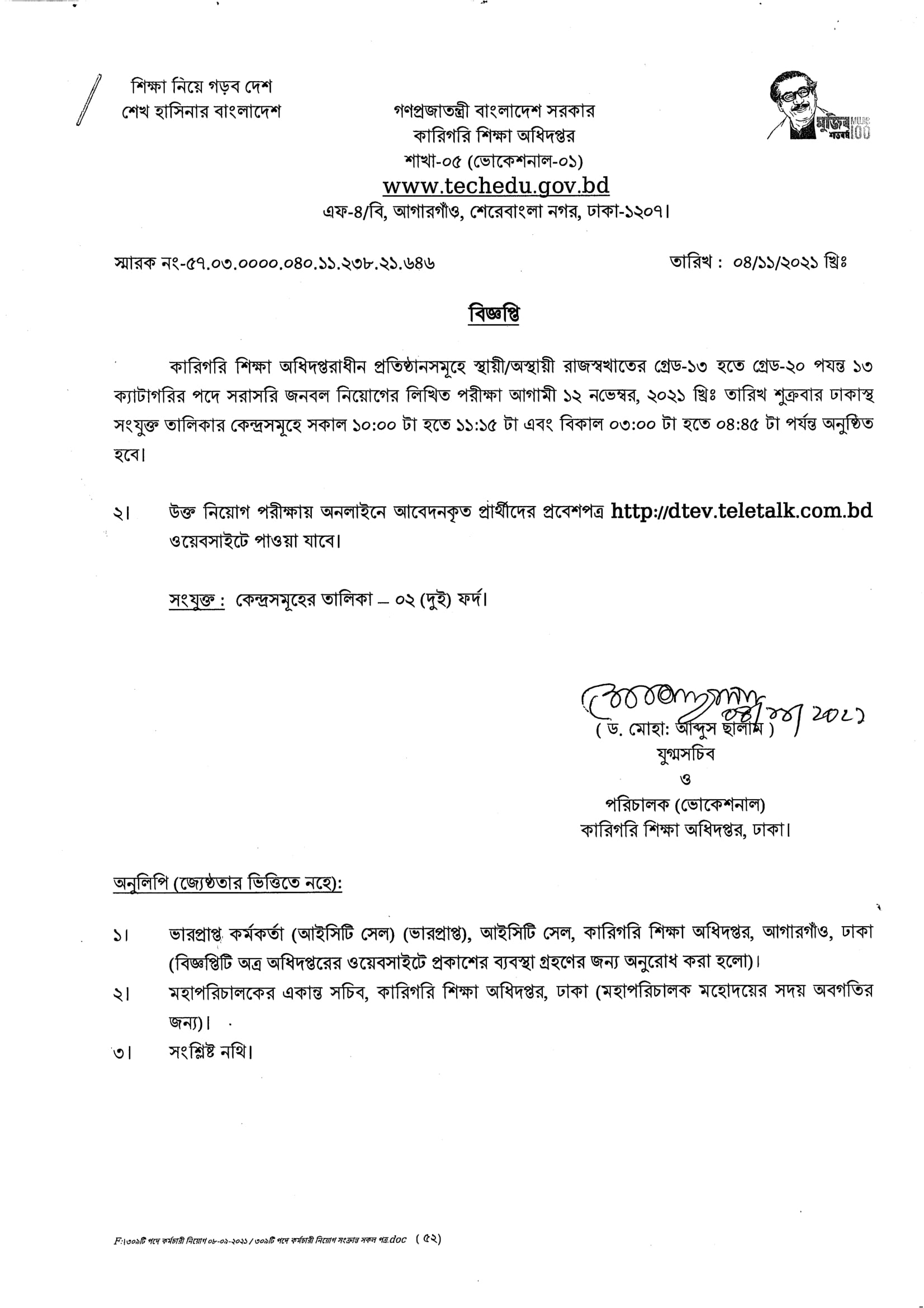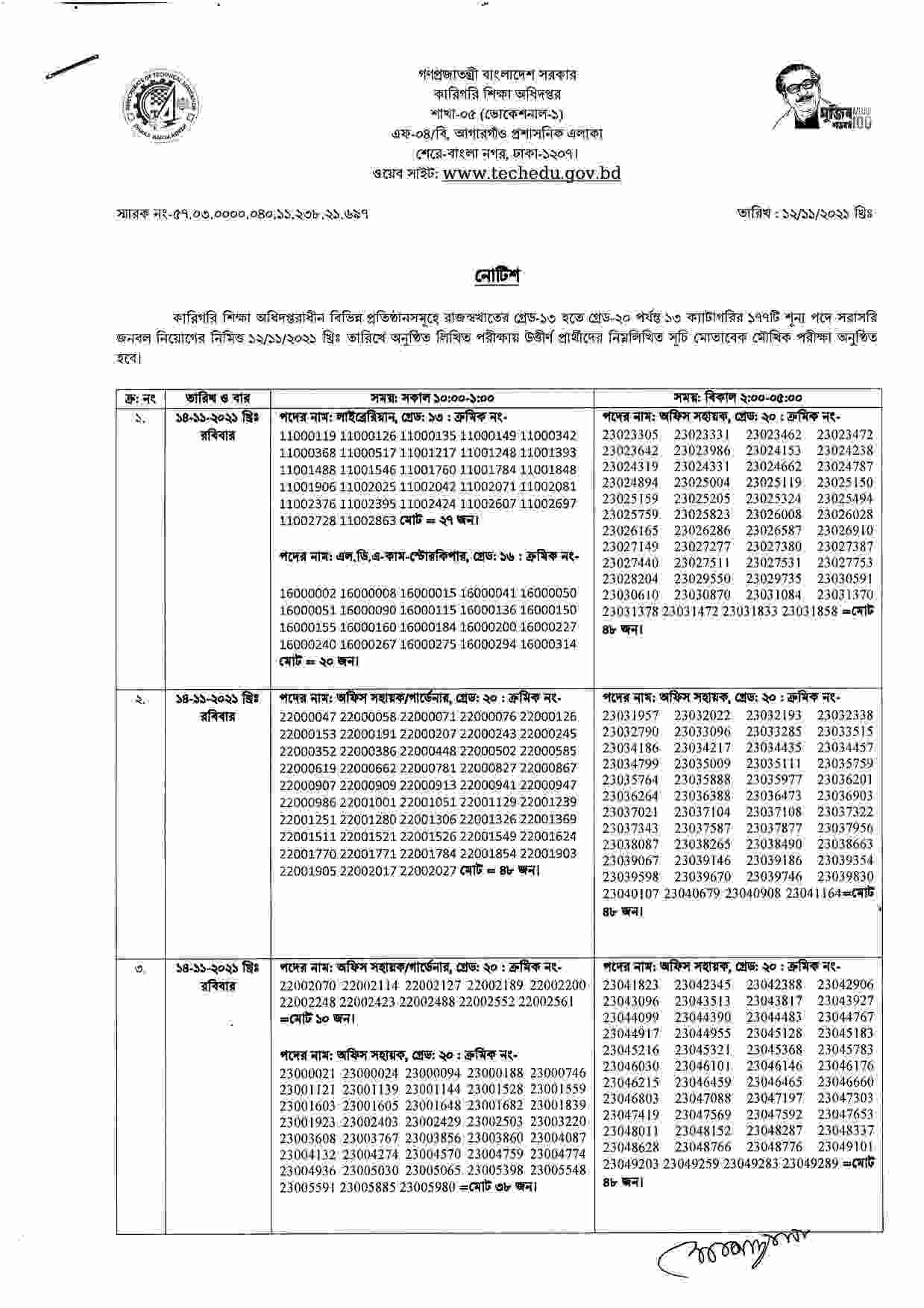- Written examination outcomes and the date for the viva voce will seem on the official web site of http://www.techedu.gov.bd on respective dates.