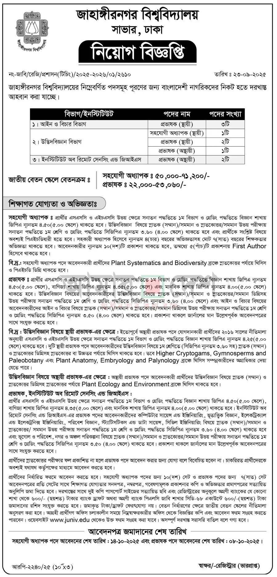 Interested eligible males & girls are eligible to use for the Jahangirnagar University Job Circular 2025.