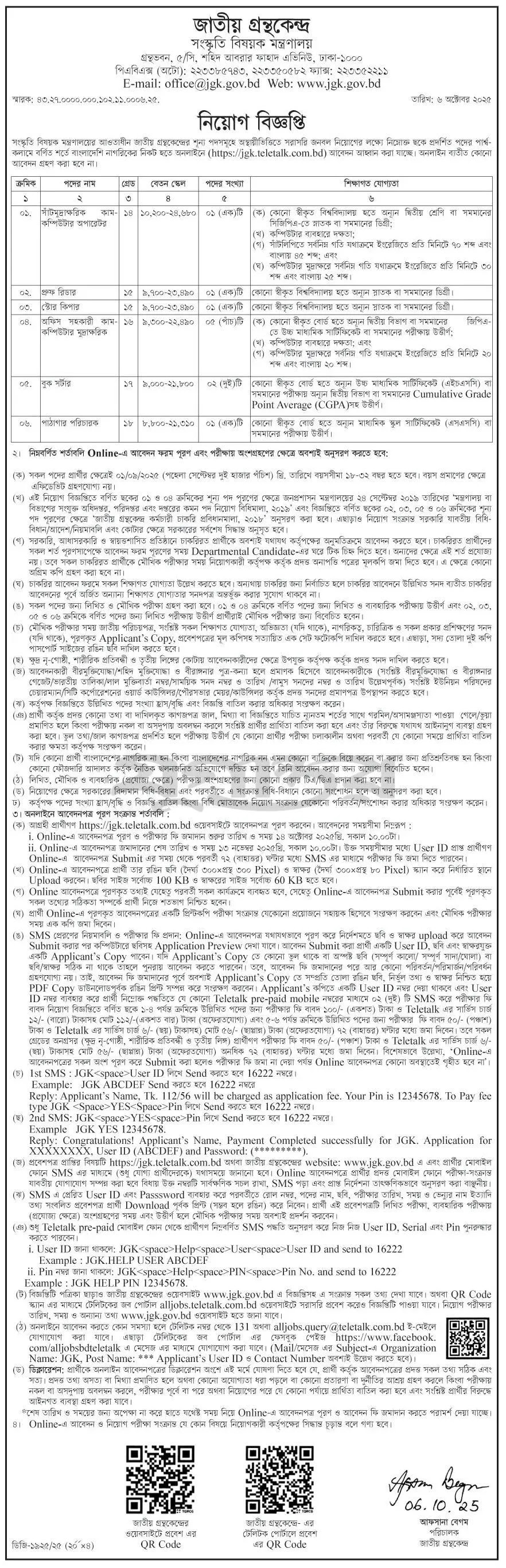 Jatiya Grantha Kendro JGK Job Circular 2025