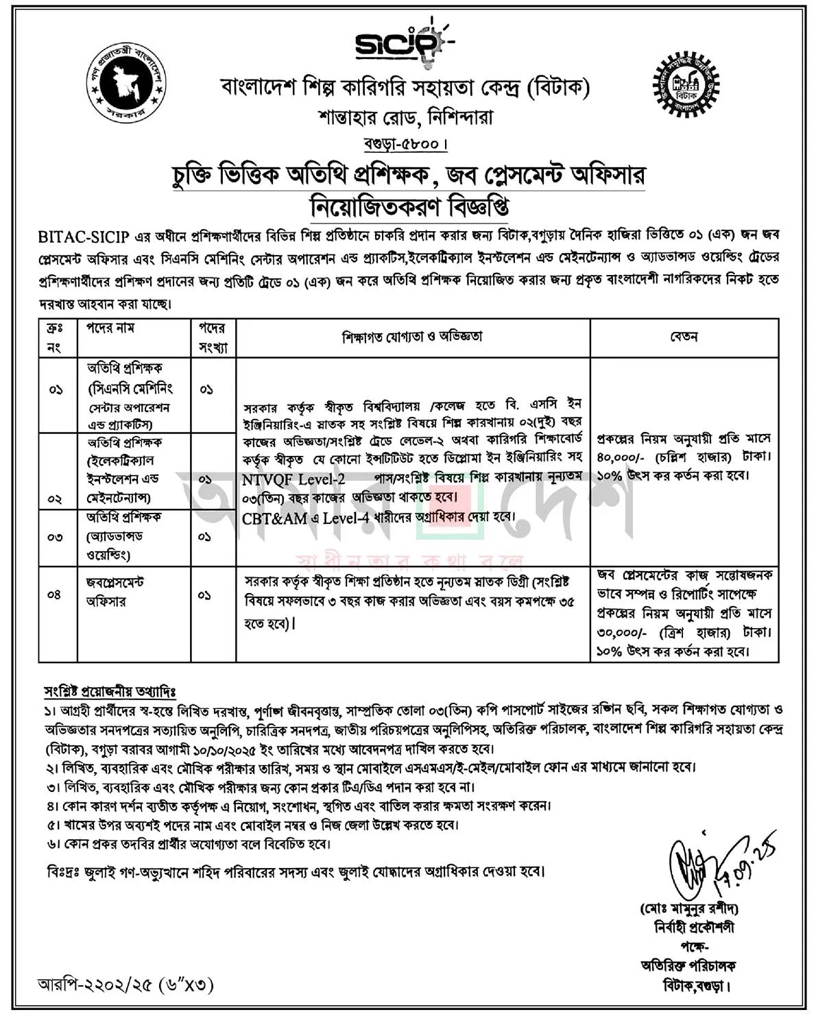 It’s crucial to know that, you must know the job utility schedule change discover, examination date, SICIP job consequence, & and so forth. When you want any form of replace discover then, you must go to the www.sicip.gov.bd web site & our web site.