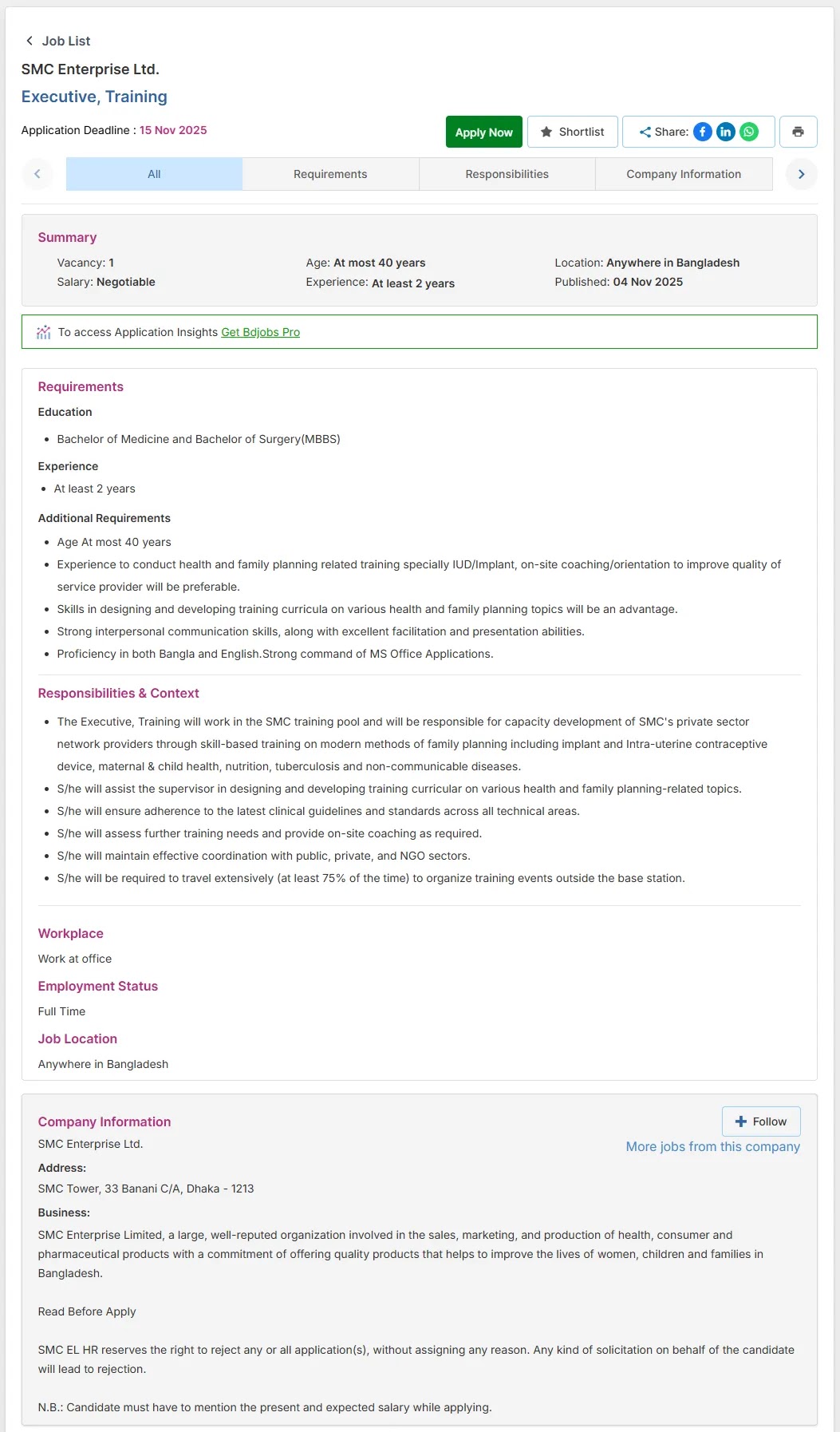 Publish Website: https://www.smc-bd.org/job & BD Jobs Limited.