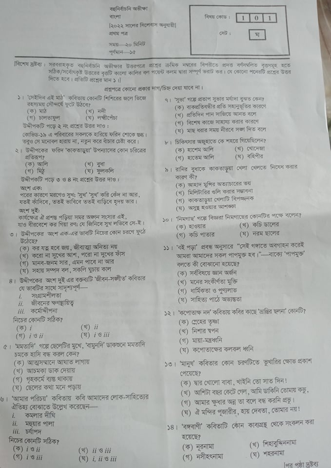 SSC Bangla 1st Paper MCQ Question Solution 2023