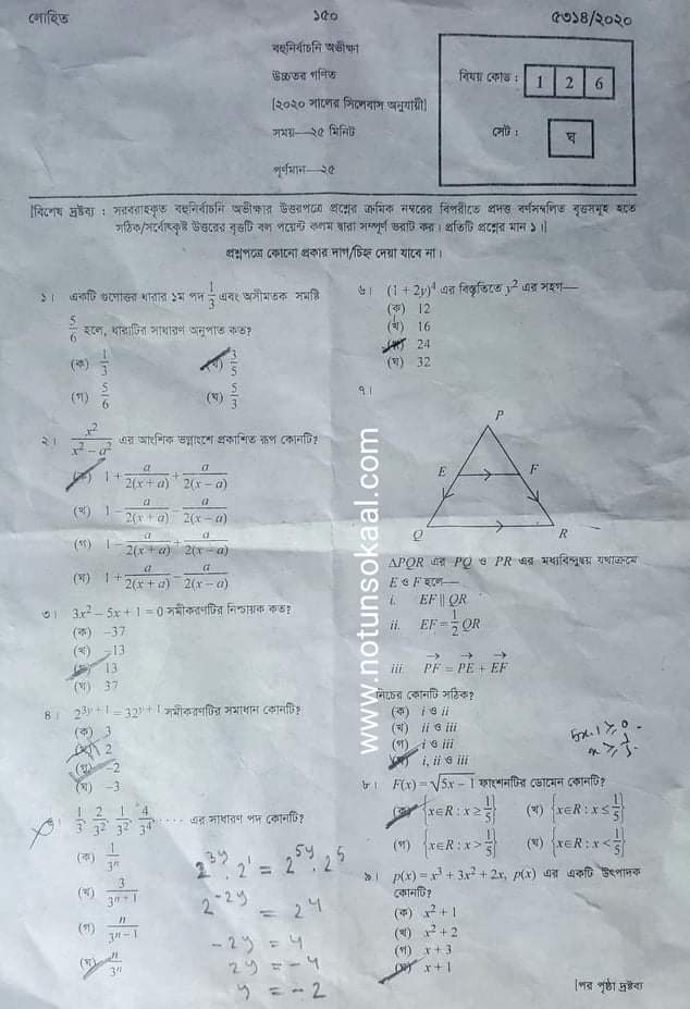 SSC Question Answer 2023 – Higher Math MCQ Solution
