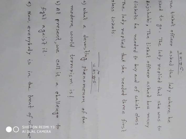 The ticket officer requested the girl the place he preferred to go. The girl replied that she was to Rajshahi. The ticket officer requested what number of tickets he wanted to purchase and of which class. The girl replied that she wanted three firstclass tickets.